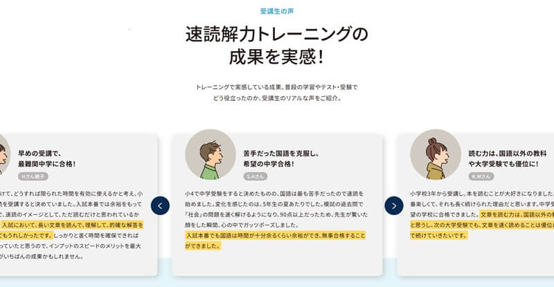 口コミの多くは、速読解力講座が単なる速読術に留まらず、語彙力や論理的思考力をバランスよく鍛えてくれる点を高く評価。受験を終えた保護者からも「もっと早く始めておけばよかった」という声が多く聞かれます。