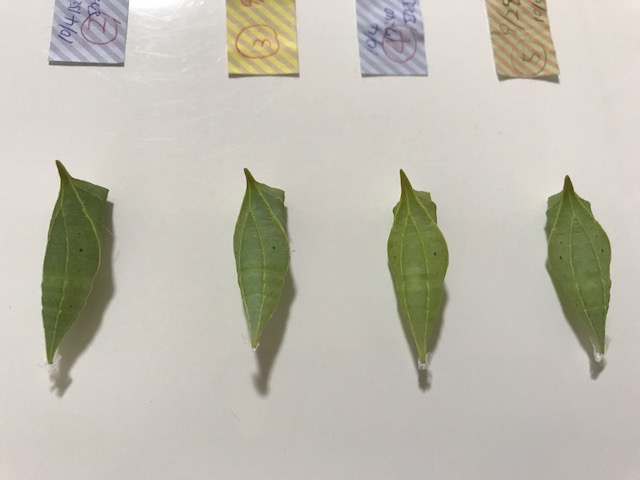 アオスジアゲハの蛹にはどんな特徴があるのか。蛹が羽化するまでの期間はどれくらいなのか。育ててみてわかりました。