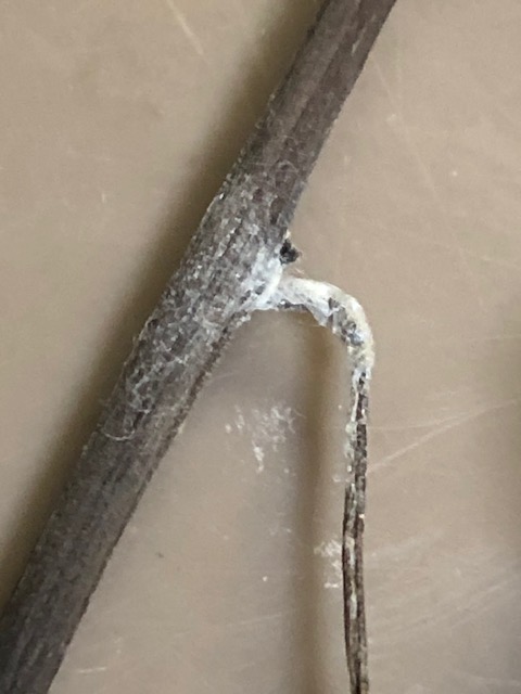 蛹になる場所を決めた幼虫は、葉っぱの付け根に入念に糸を吐き、しっかり固定するからです。