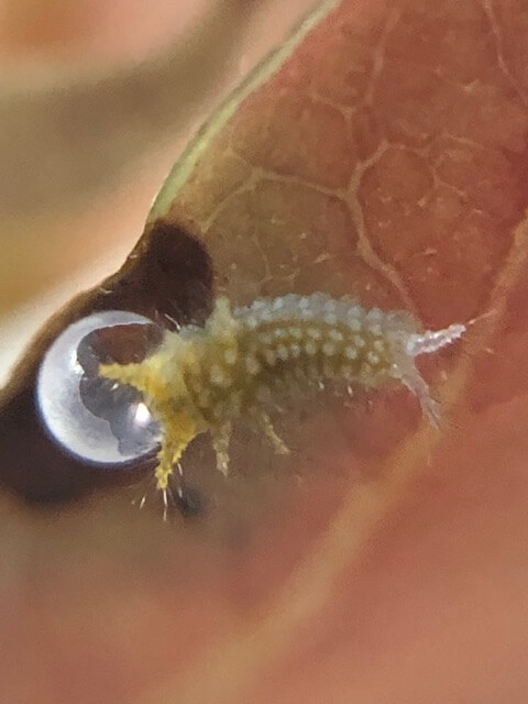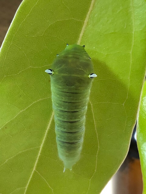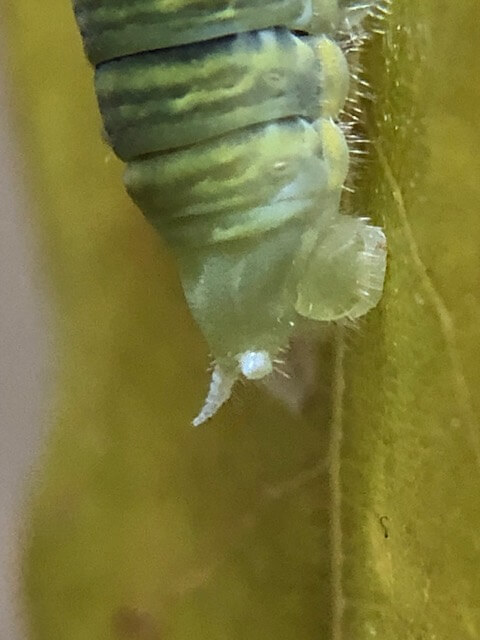 幼虫は蛹化が近くなると、透明感のある黄緑色になります。