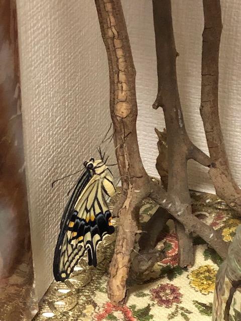 立派な蝶がとまっていました。これは今季最初に孵化した2匹のうちの1頭。