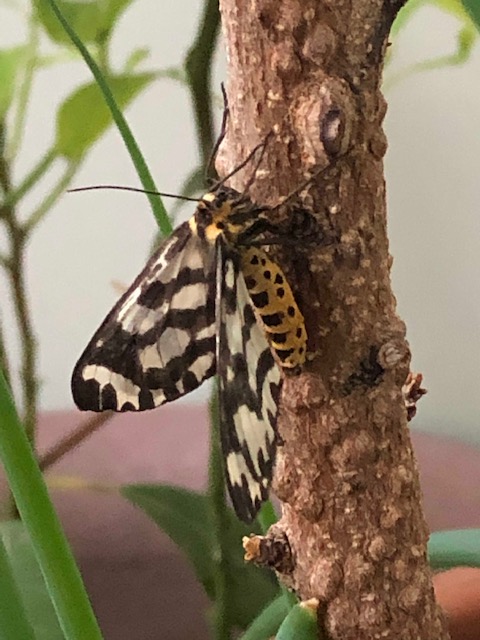 朝出かける前にベランダの木にとめていったのですが、気温が低いせいか午後になっても飛び立たず、結局部屋に戻しました。