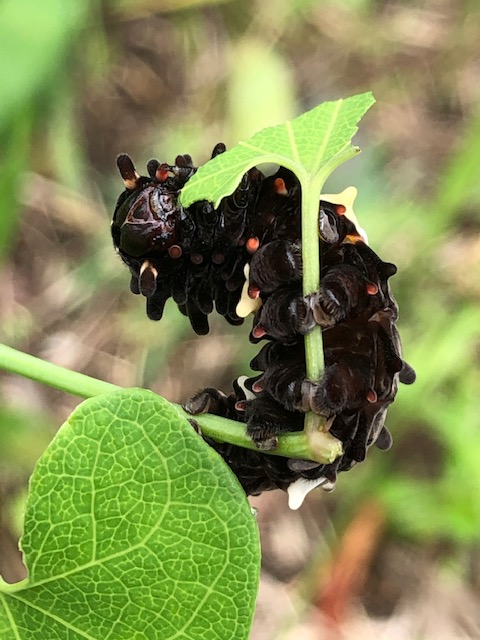 アゲハチョウの終齢幼虫では異色の黒い芋虫。