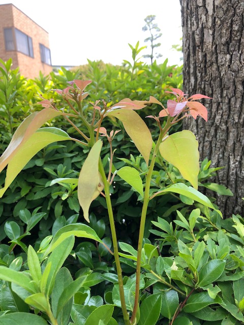 ここは歩道の植え込み。このようなひこばえの柔らかそうな葉っぱによくいます。