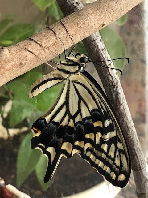 アオスジアゲハは葉っぱの上で蛹化するので、徘徊することは少なく、飼育は楽です。