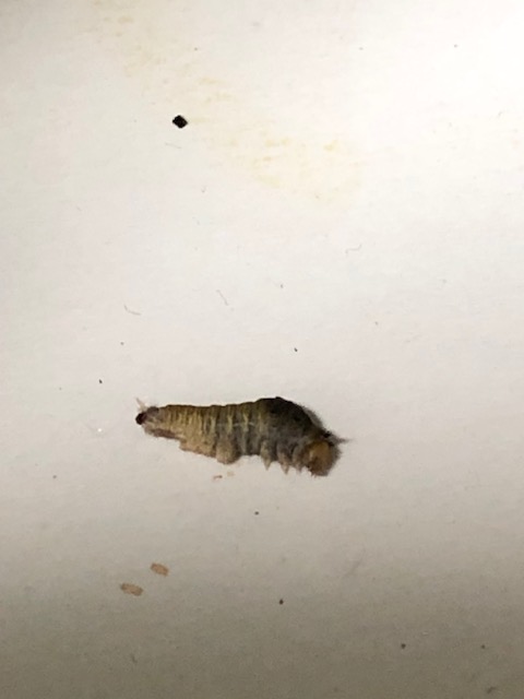 この2匹は数日前に同じクスノキから採取した幼虫です。その木に薬剤が付いていたのか。であれば、なぜここまで成長してから死んだのか。致死量に達したということ?
