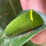 この2匹は数日前に同じクスノキから採取した幼虫です。その木に薬剤が付いていたのか。であれば、なぜここまで成長してから死んだのか。致死量に達したということ?