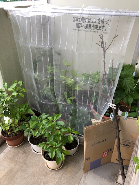 これ以上の産卵を防ぐため、山椒に防虫ネットをかぶせました。