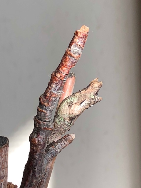 これは張り付いた枝が明るい茶色だったせいか、淡い緑色の蛹になり、ぜんぜん擬態になっていませんでした。
