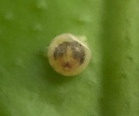 アゲハチョウの孵化不全。単に卵が孵化しないということなら、よくあること。卵が5個あれば、1個ぐらいは孵化しないものです。