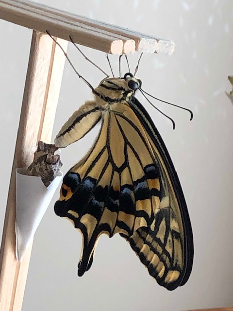 かみさんがピンセットでアシストして、何とか蛹にはなったものの、ちゃんと羽化できるのか。