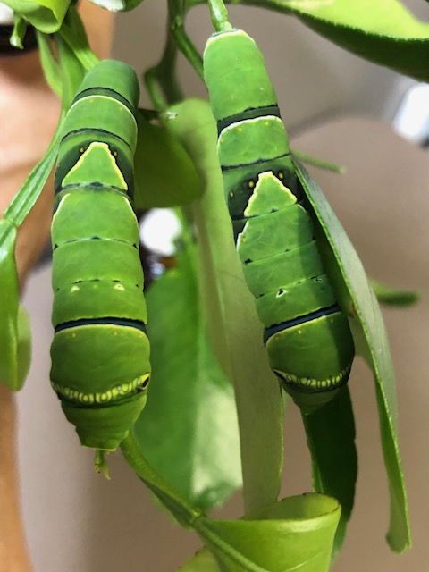 ナミ、クロ、アオスジアゲハの幼虫と比べると、キアゲハの幼虫はグロいですよね。それでも飼ってみればかわいいと思うのか。