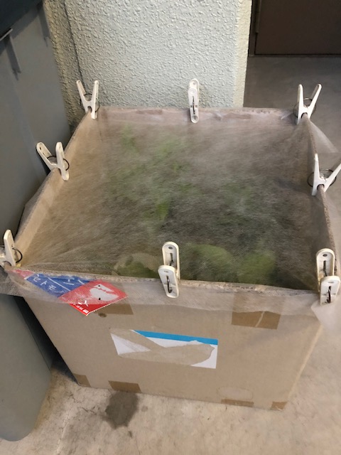 この枝を入れていたダンボール箱には何もいません。すでに脱出したのか。