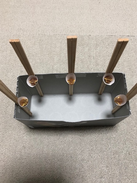 友人は「ここにしかいない蝶」と言っていたそうですが、かみさんは何の蝶だかわからず、自転車置き場とか、スロープの横とか、危なそうな場所にいた蛹5匹を持ち帰りました。
