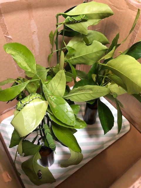 アオスジアゲハは大丈夫ですが、ナミアゲハは餌の調達が難しくなってきたので、早く蛹化してほしいところ。
