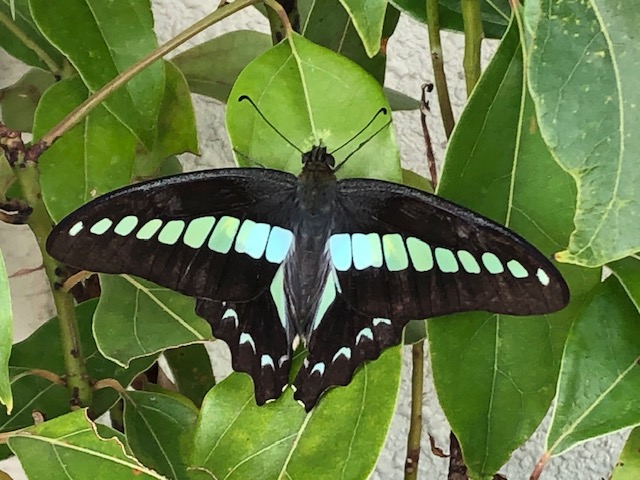 今年の日誌46稿 に書いた、エアー糸掛けをしていたアオスジアゲハが無事羽化しました。