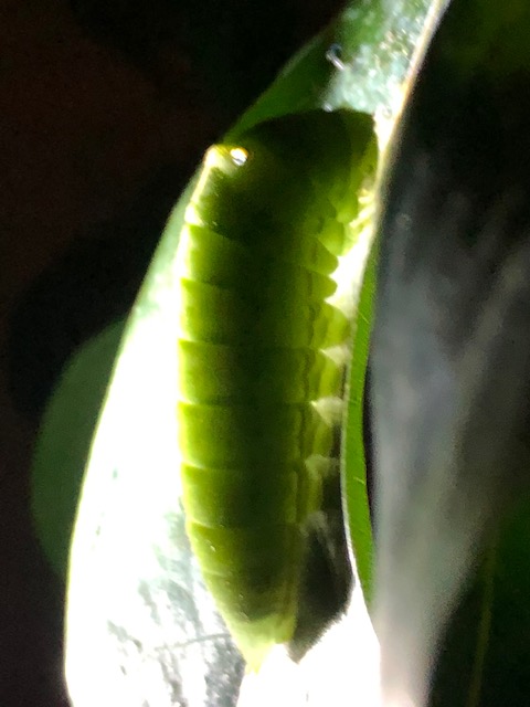 ベランダのアオスジアゲハの幼虫1匹が前蛹目前。