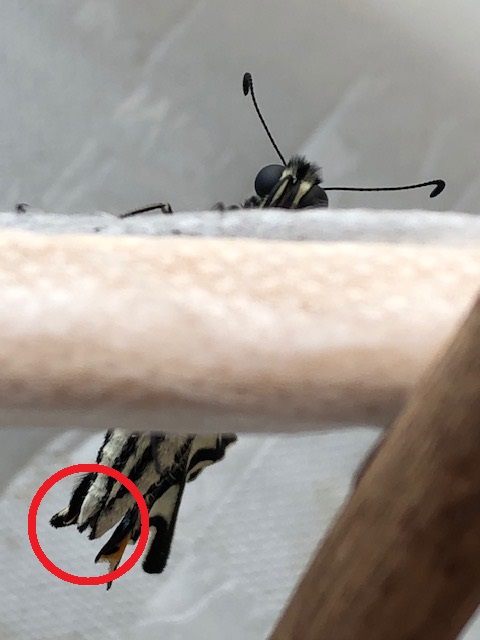 先月羽化不全体のアオスジアゲハが死んだ時も同じ。