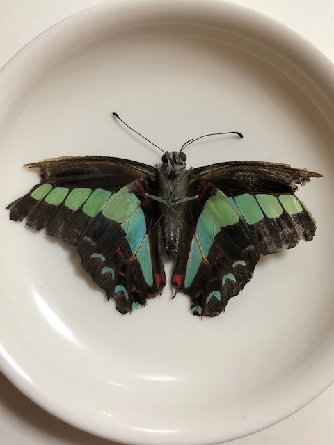 現在我が家にいるアオスジアゲハ2頭のうち、1頭が死にました。