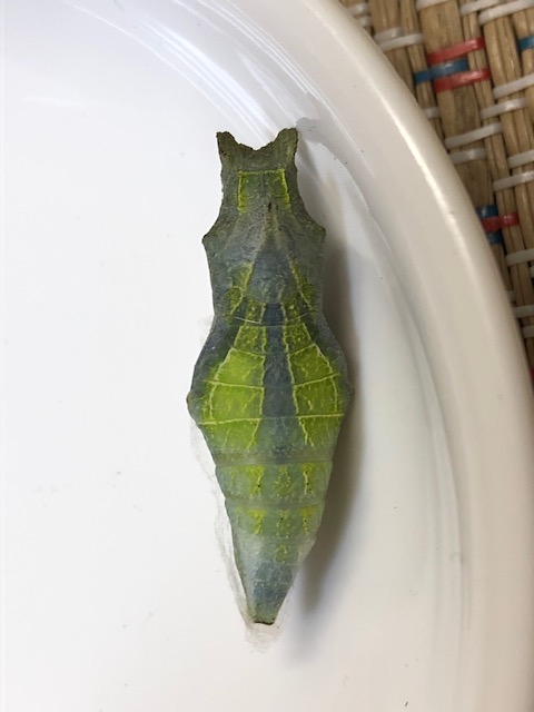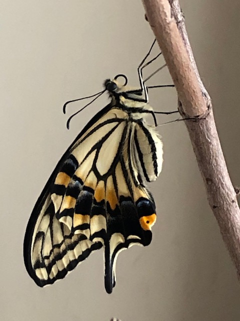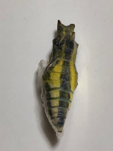 残り2匹になっていたナミアゲハ越冬見込み蛹のうち1匹が、羽化してしまいました。