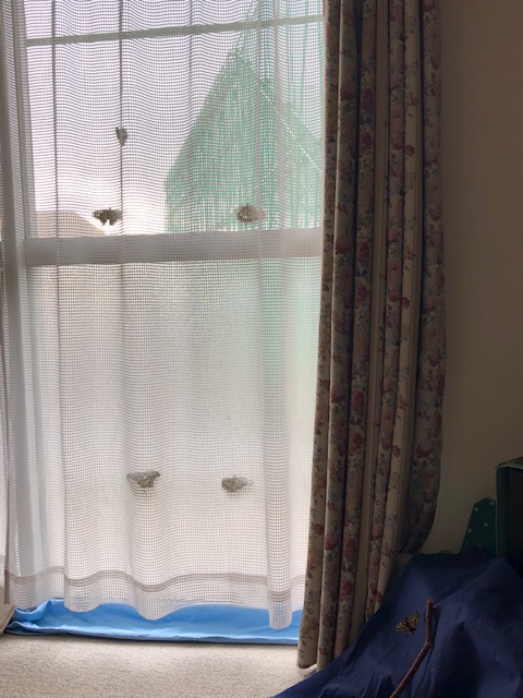 このようにカーテンの裏側で翅を広げて落ち着きます。