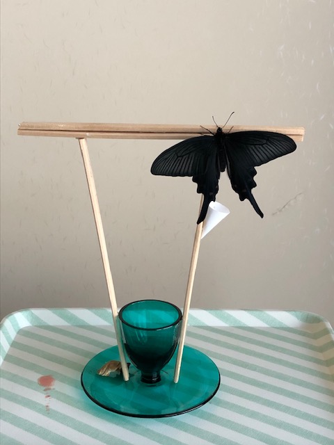 ジャコウアゲハ♂3頭目のすぐあと、友人から託されたアオスジアゲハ( 前回の日誌 )が羽化しました。