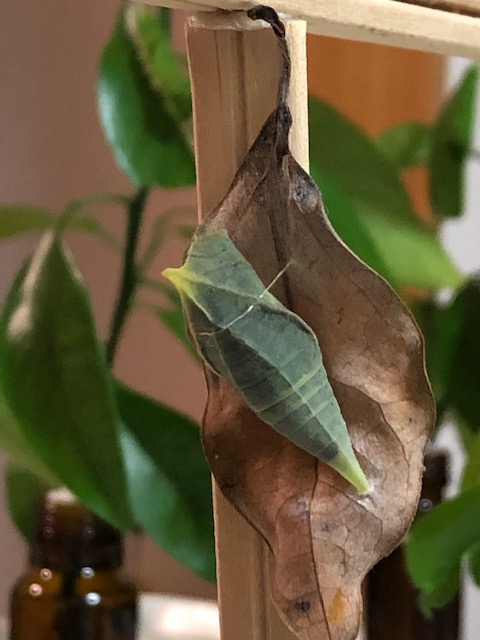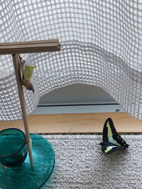 アオスジアゲハの越冬蛹がようやく羽化しました。