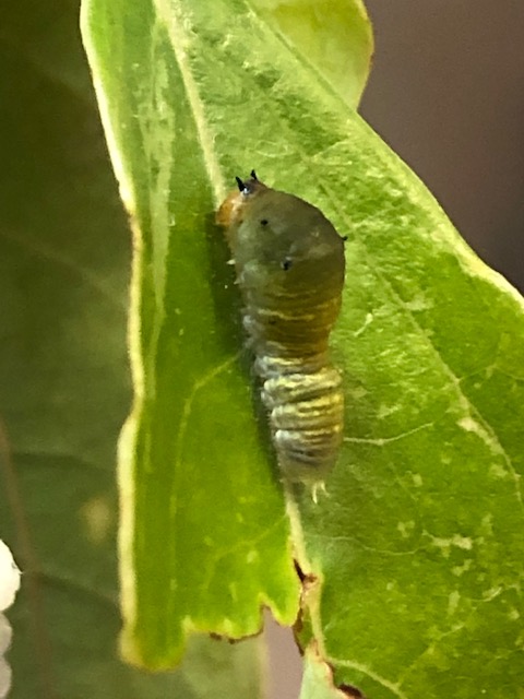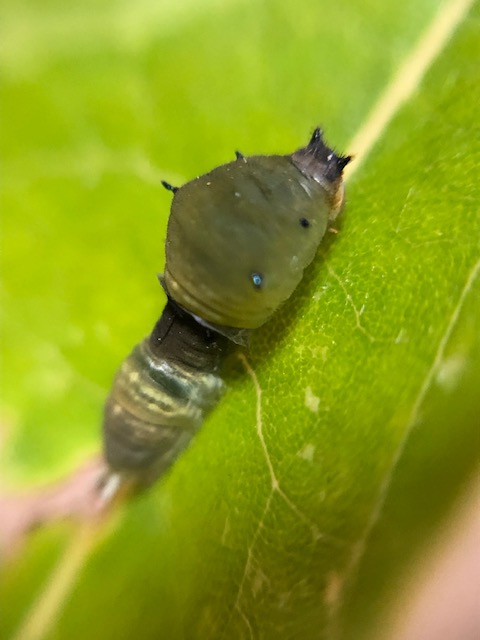 最近、Yahoo!知恵袋で「これは何の幼虫か」という質問があったので、「クロアゲハの2齢か3齢幼虫」と答えたら、正解は1齢幼虫だった(別の回答で判明)ということがありました。
