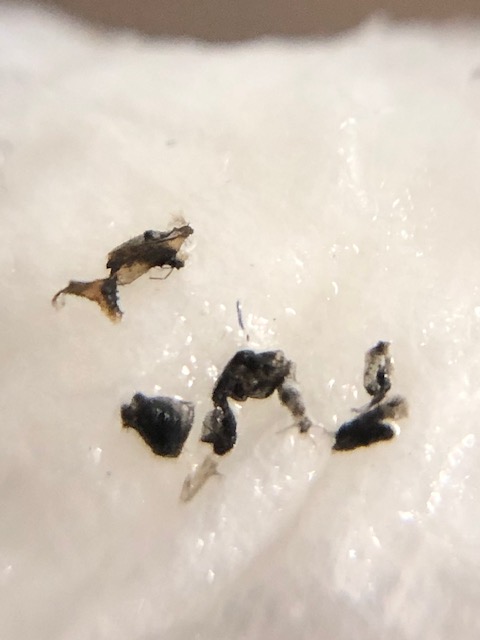 ではなくて、こんな現象はこれまで見たことがなかったので、Yahoo!知恵袋で尋ねてみたところ、「脱皮の皮が残っている状態」という回答がありました。