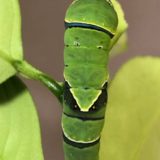 最近、Yahoo!知恵袋で「これは何の幼虫か」という質問があったので、「クロアゲハの2齢か3齢幼虫」と答えたら、正解は1齢幼虫だった(別の回答で判明)ということがありました。