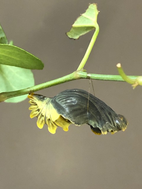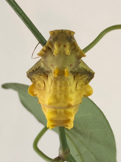 概ねナミアゲハやクロアゲハの蛹は、蛹化直後は緑色、その後茶色に変わるか、緑色のままか。