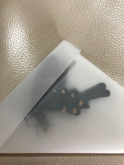 翅を傷付けないようにトレーシングペーパーに包んで移送。