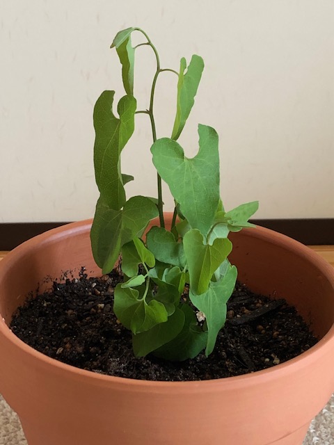 まず、卵と一緒にウマノスズクサを一株もらってきて、鉢に植えました。