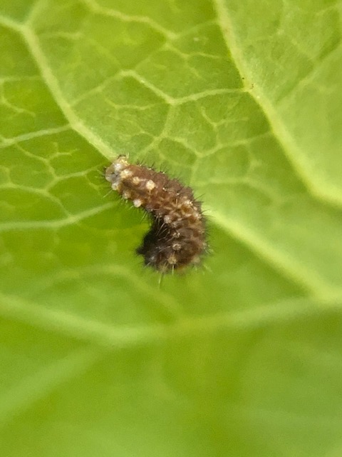 大きさは1~2mmほど。卵と同様にオレンジ色がかった茶系の幼虫。