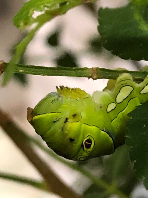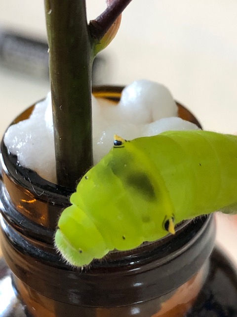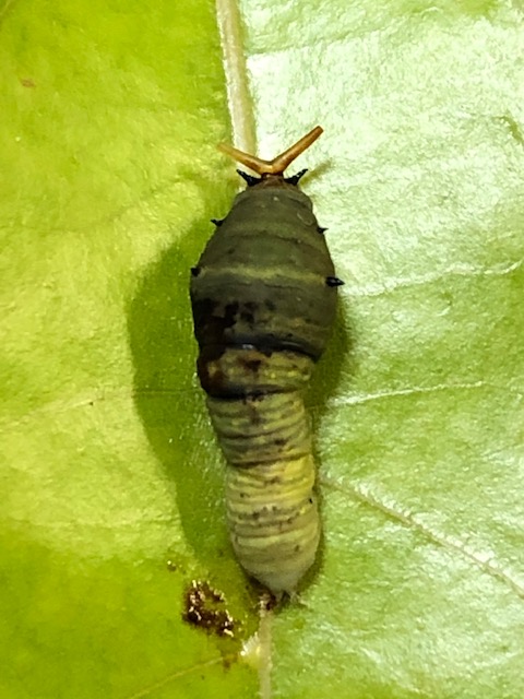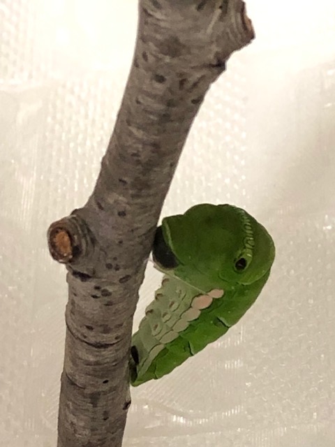 この幼虫は脱皮して奇麗な蛹になり、無事に羽化しました。