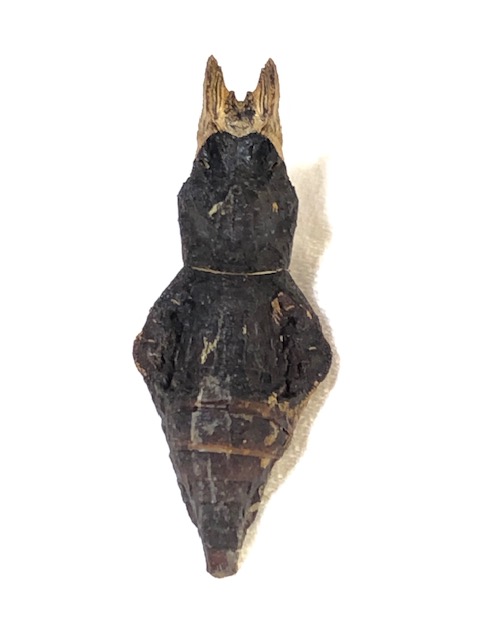 ヤドリバエに寄生されていると、蛹になってから1日か2日後に、このような黒い点が現れる場合があります。(現れない場合もあります)。いかにも、中に異物があるという感じですね。