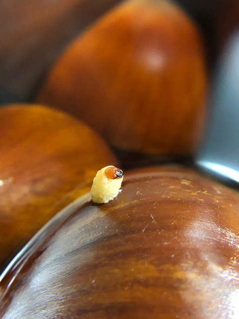 調べてみたら、クリシギゾウムシ(別名栗虫)の幼虫でした。