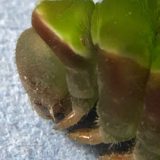 お馴染みヤドリバエの幼虫と似た色ですが、ちゃんと頭が識別できます。