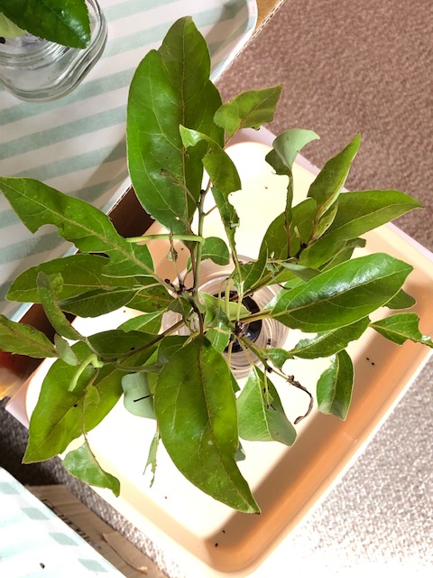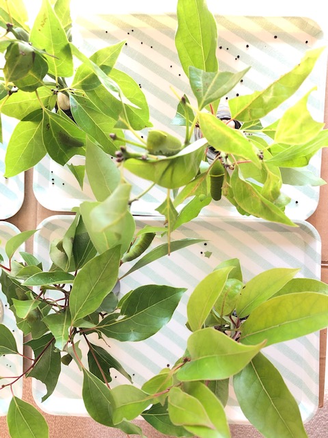 アオスジアゲハがワンダリングを始めたら、暖かいうちはベランダのクスノキに移します。