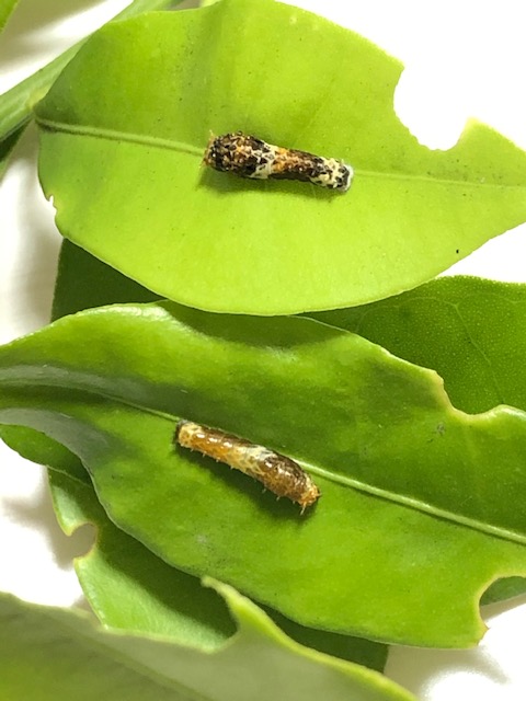 なんと、キアゲハの幼虫が付いていました。