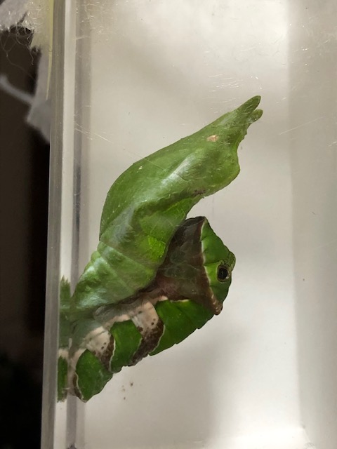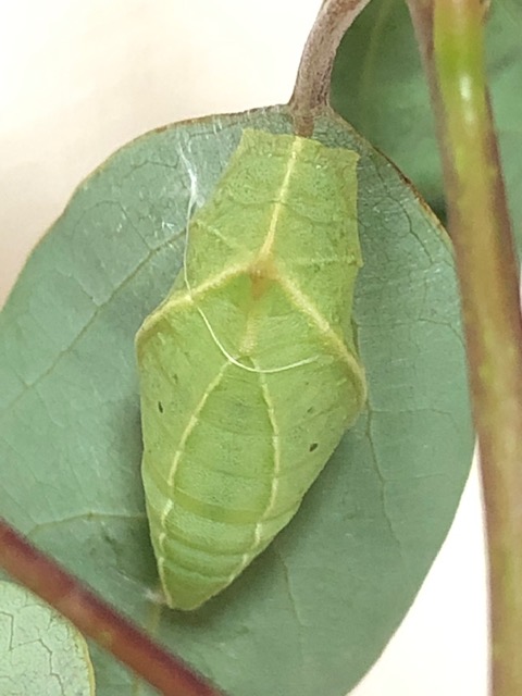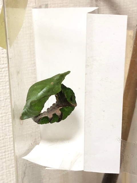 今回いろいろ見ていてわかりましたが、ツルツルの所で蛹化した蛹は緑色に、ザラザラの所で蛹化した蛹は茶色(ちょっとザラザラだと中間色)になることが多いそうですね。