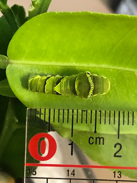1.7~8cm。脱皮後間もないナミアゲハ5齢幼虫。