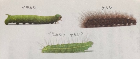 イモムシとケムシを分けていますが、中間的な種もいて、境界はあいまいとのこと。