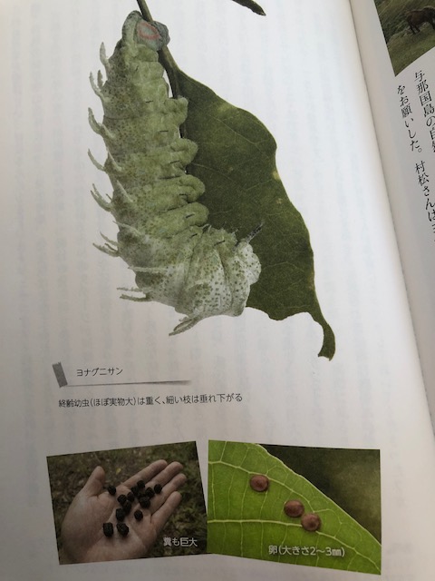 成虫は開張30cm。幼虫は10cm超え。日本では与那国島だけに生息。