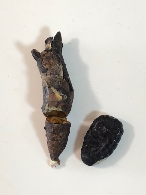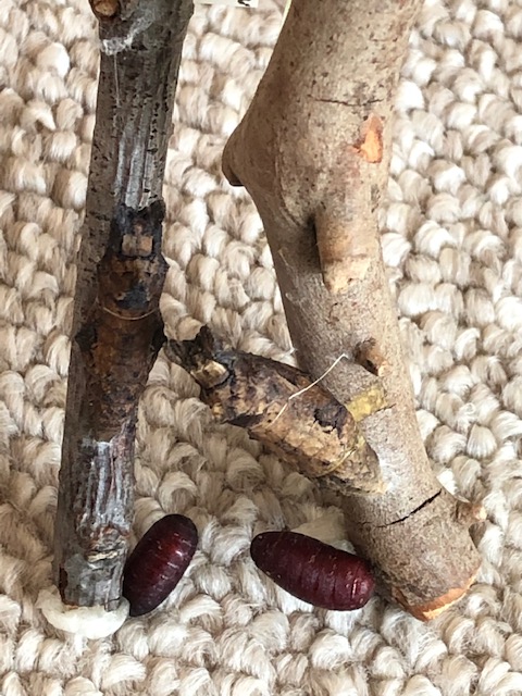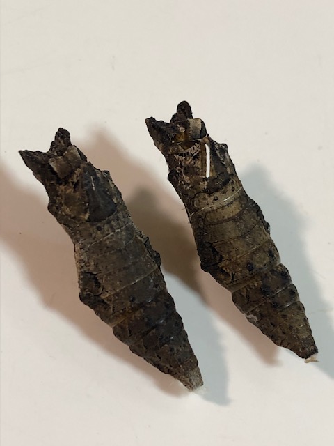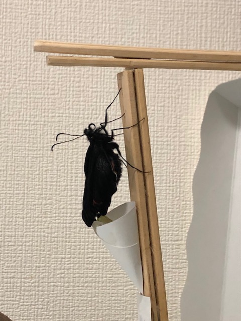 こういう褐色の蛹は、色づきの判別が難しいですね。羽化目前でなければ死んでいたでしょう。