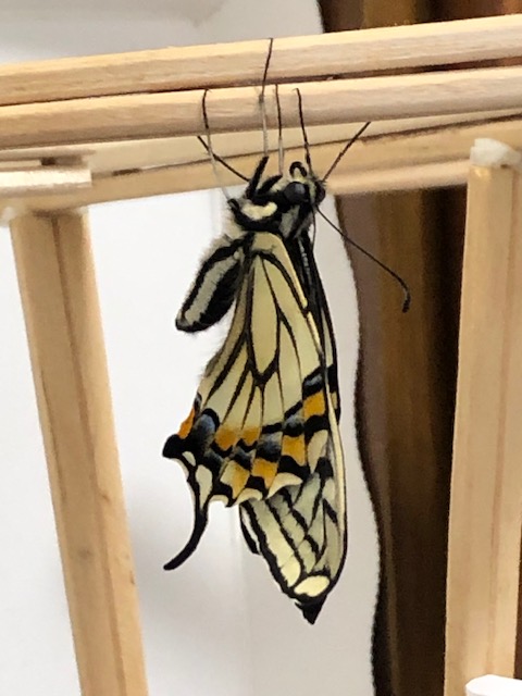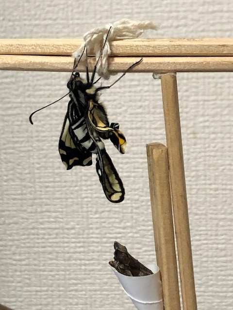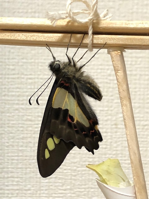 クロアゲハの越冬羽化は、我が家のアゲハ飼育史上初めて。