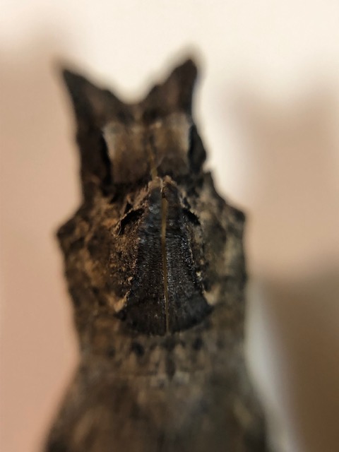 かみさんが越冬蛹をつまみ上げたところ、殻がパリッと割れてしまいました。羽化目前で殻と体の間に隙間ができていたため、簡単に割れてしまったようです。