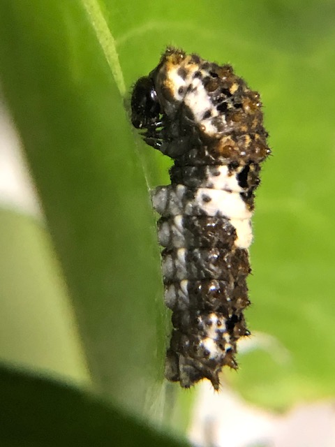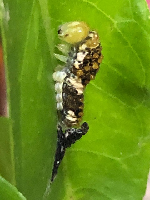 3鉢に分けた中の1本に、幼虫が忽然と現れました。