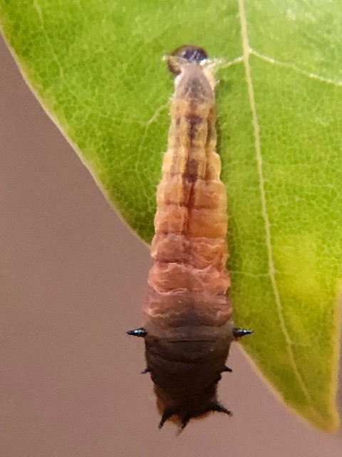アオスジアゲハの餌用に採ってきたクスノキに、見たことのない虫が。