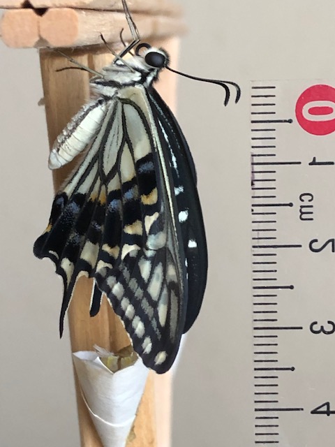 前翅長35mm(標準値は40~60mm)。モンシロチョウのひと回り大きいくらいの寸法。